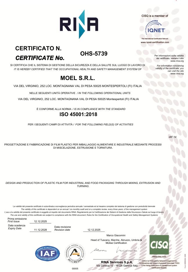 Moel S.r.l. Celebrates Christmas 2025 with the CERTIFICATION issued by RINA
